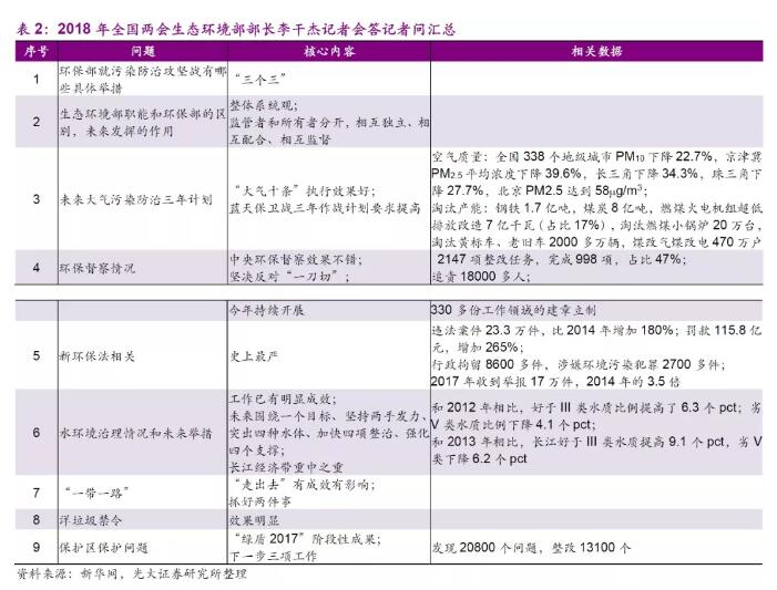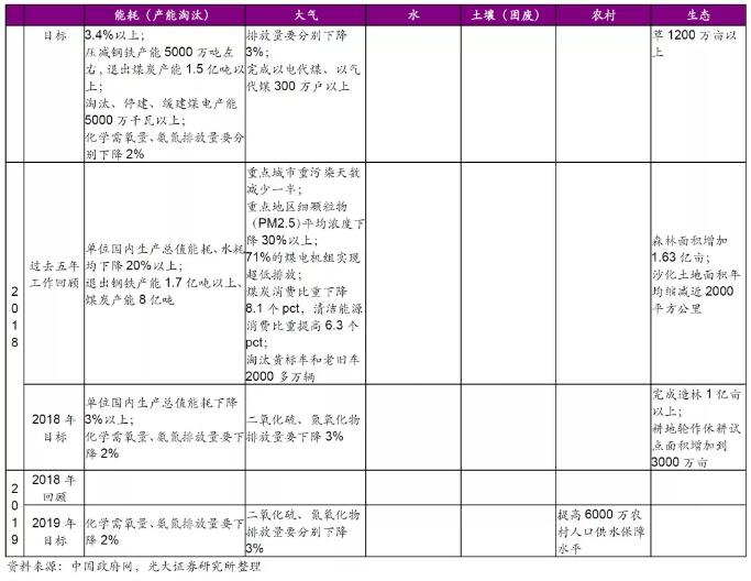 回顧今年的政府工作報(bào)告,除了在歷年重點(diǎn)關(guān)注的大氣污染治理方面,新加入了鋼鐵行業(yè)超低排放改造、汾渭平原等治理的重點(diǎn)工作外,我們認(rèn)為有下列內(nèi)容值得重點(diǎn)關(guān)注: