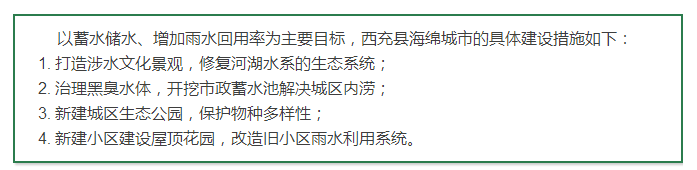 西充縣于今年2月出臺了《西充縣海綿城市建設(shè)計(jì)劃》及建設(shè)項(xiàng)目計(jì)劃,確定了到2020年達(dá)成目標(biāo):70%的年徑流總量控制率。