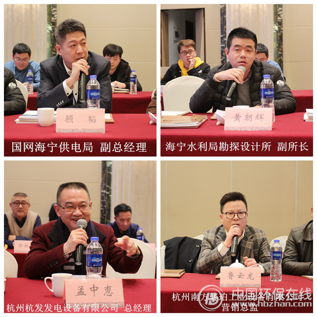 國網(wǎng)海寧供電局副總經(jīng)理顧韜、海寧水利局勘探設(shè)計所副所長黃朝輝、杭州杭發(fā)發(fā)電設(shè)備有限公司總經(jīng)理孟中惠、杭州南方賽珀工業(yè)設(shè)備有限公司營銷總監(jiān)魯云龍作現(xiàn)場交流。