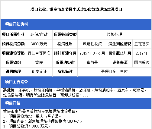 中項網(wǎng)獨家授權(quán)北極星固廢網(wǎng)發(fā)布最新垃圾處理項目(2019年3月18日更新),其中包括垃圾填埋場項目、城鄉(xiāng)一體化垃圾處理轉(zhuǎn)運(yùn)站項目等垃圾處理項目。具體內(nèi)容如下:
