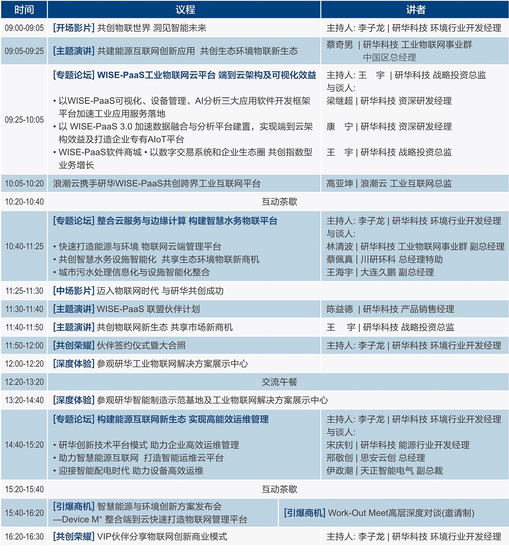 本次論壇主題為“共建能源互聯(lián)網(wǎng)創(chuàng)新應(yīng)用 共創(chuàng)生態(tài)環(huán)境物聯(lián)新生態(tài)”,旨在共同探討能源互聯(lián)網(wǎng)平臺(tái)建設(shè)及設(shè)施安全;智慧水務(wù)及環(huán)保設(shè)備運(yùn)維解決方案,并攜手伙伴分享如何基于研華WISE-PaaS云平臺(tái),發(fā)展數(shù)據(jù)驅(qū)動(dòng)之創(chuàng)新行業(yè)解決方案 ( AIoT.SRP ) 。