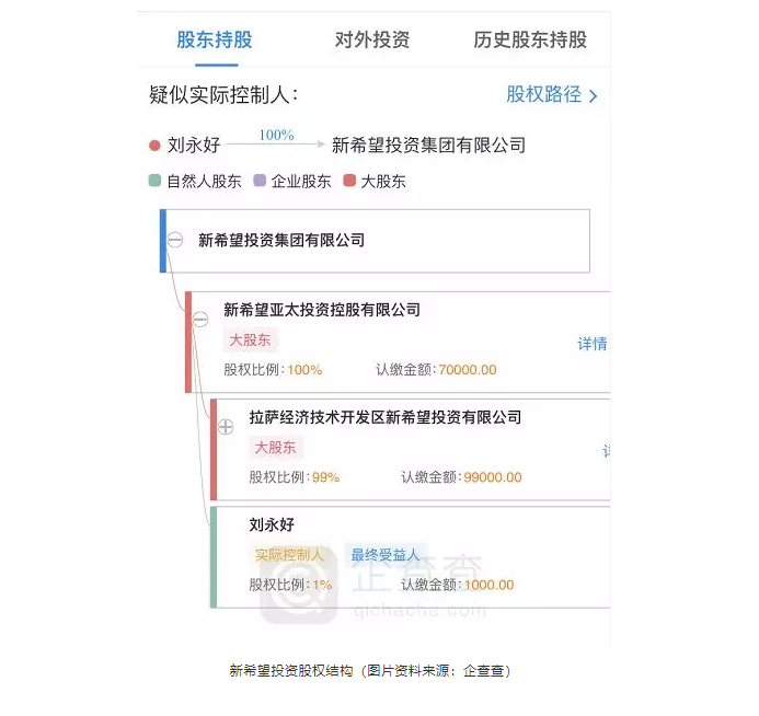 據(jù)悉,新希望投資是新希望集團旗下的投資平臺,由新希望亞太投資控股有限公司控股,注冊地址位于拉薩經(jīng)濟開發(fā)區(qū)。經(jīng)營范圍包括:創(chuàng)業(yè)投資(不得從事?lián):头康禺a(chǎn)業(yè)務;不得參與發(fā)起或管理公募或私募證券投資基金、投資金融衍生品);股權投資(不含公募基金。不得從事證券、期貨類投資;不得參與發(fā)起或管理公募或私募證券投資基金、投資金融衍生品;不得從事房地產(chǎn)和擔保業(yè)務);投資管理(不含金融和經(jīng)紀業(yè)務。不得從事證券、期貨類投資;不得向非合格投資者募集、銷售、轉(zhuǎn)讓私募產(chǎn)品或者私募產(chǎn)品收益權);資產(chǎn)管理(不含金融資產(chǎn)管理和保險資產(chǎn)管理)等。