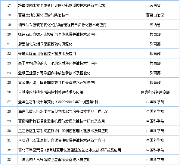 2019年度國家自然科學(xué)獎受理項目目錄(環(huán)境保護(hù)組)