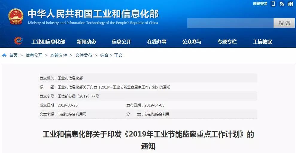 2019年工業(yè)節(jié)能監(jiān)察重點(diǎn)工作計(jì)劃