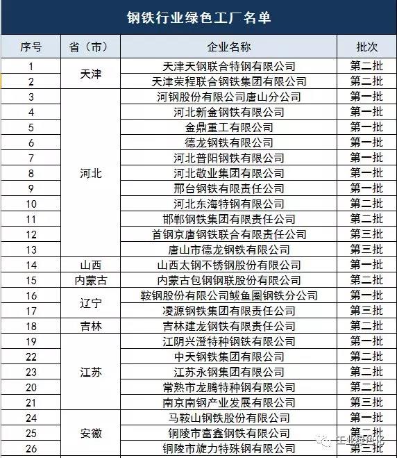 河北省鋼鐵行業(yè)共入圍11家綠色工廠,分別是河鋼股份有限公司唐山分公司、河北新金鋼鐵有限公司、金鼎重工有限公司、德龍鋼鐵有限公司、河北普陽(yáng)鋼鐵有限公司、河北敬業(yè)集團(tuán)有限公司、邢臺(tái)鋼鐵有限責(zé)任公司、河北東海特鋼有限公司、邯鄲鋼鐵集團(tuán)有限責(zé)任公司、首鋼京唐鋼鐵聯(lián)合有限責(zé)任公司與唐山市德龍鋼鐵有限公司。