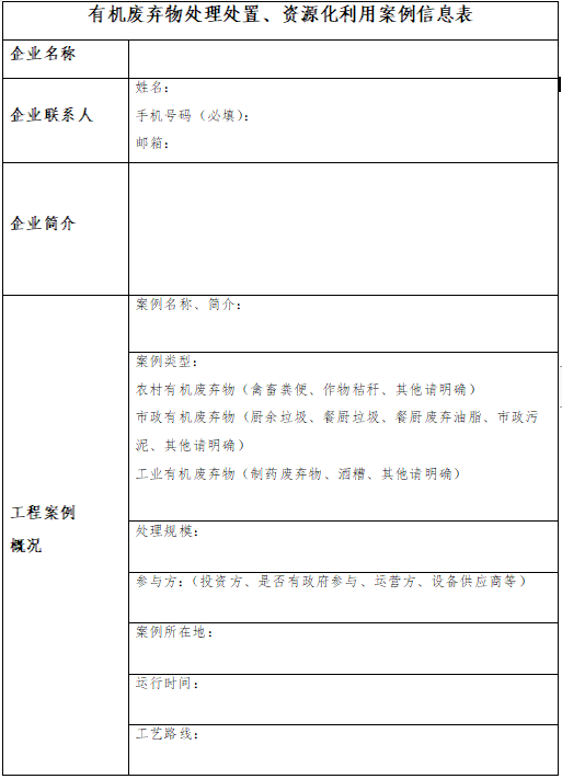 在此背景下,中國環(huán)聯(lián)擬面向行業(yè)征集“有機廢棄物處理處置、資源化利用典型案例”,征集范圍包括農(nóng)村有機廢棄物(作物秸稈、畜禽養(yǎng)殖廢棄物等)、市政有機廢棄物(廚余垃圾、餐廚垃圾、餐廚廢棄油脂、市政污泥等)、工業(yè)有機廢棄物(制藥有機廢棄物、酒精廢水等)的處理處置及資源化利用項目案例。請有意向的企業(yè)按附件填寫申報表,并發(fā)郵件至以下郵箱地址。