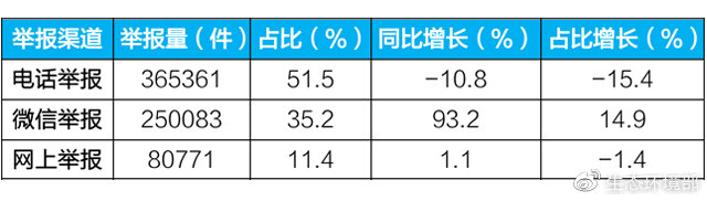 表1 2018年主要渠道舉報量及同比變化情況