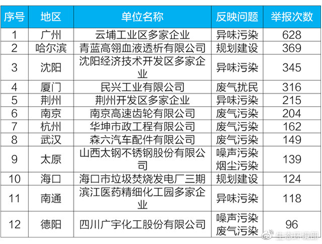 近日,生態(tài)環(huán)境部通報了2018年度全國“12369”環(huán)保舉報情況。具體情況如下: