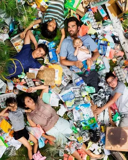三年前,美國加州攝影師Gregg Segal曾邀請(qǐng)了幾個(gè)擁有不同背景的家庭與他們?cè)谝恢軆?nèi)制造出的垃圾合影。這組名為《7天垃圾》的系列攝影作品一度在網(wǎng)上走紅。