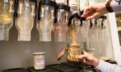 谷物、意面、堅(jiān)果、咖啡、調(diào)味品、巧克力,以及水果干等食品雜貨都用瓶子裝起來,客人必須自帶瓶罐才能完成購買。此外,橄欖油等液體商品同樣裝在大型擠壓裝置里按需售賣。