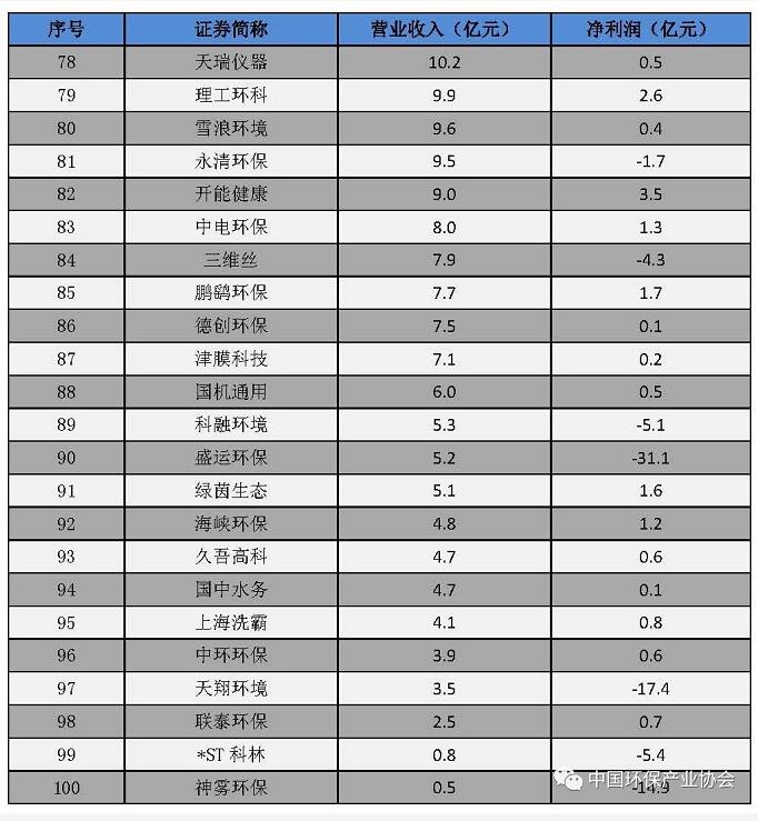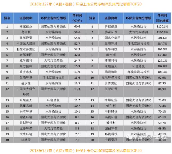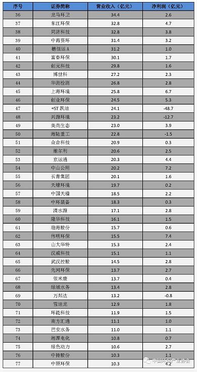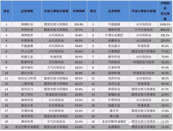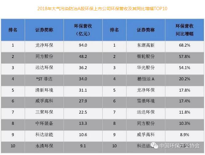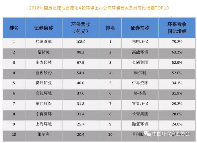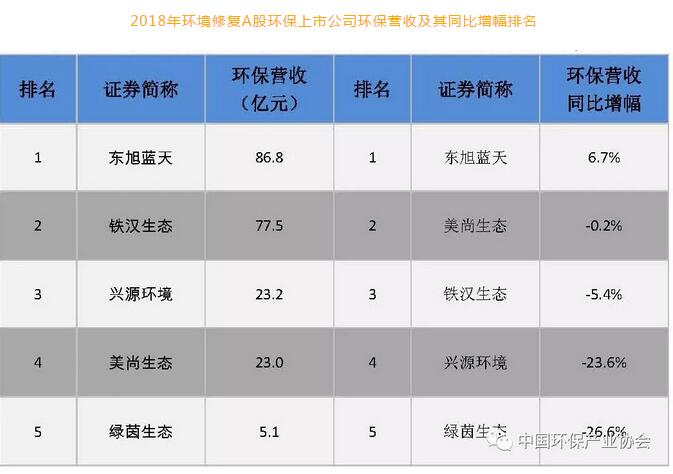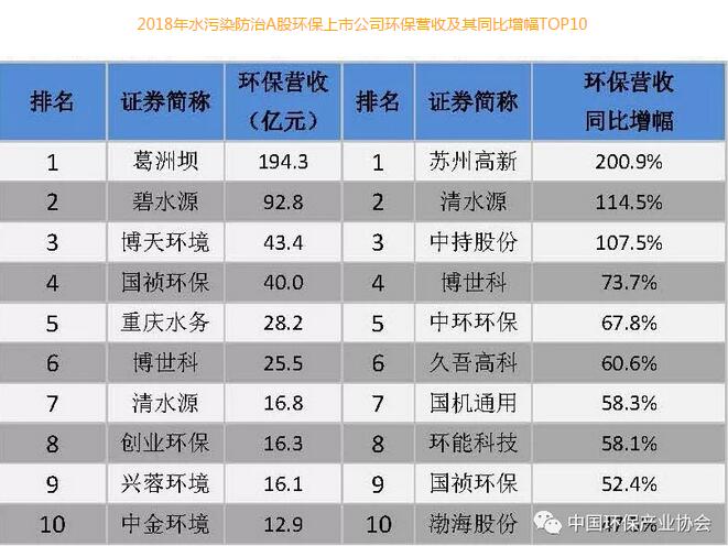 100家A股環(huán)保上市公司環(huán)保營收(27家港股環(huán)保上市公司因無法確定環(huán)保營收額故不做排名)及其同比增幅排名前20的公司如下: