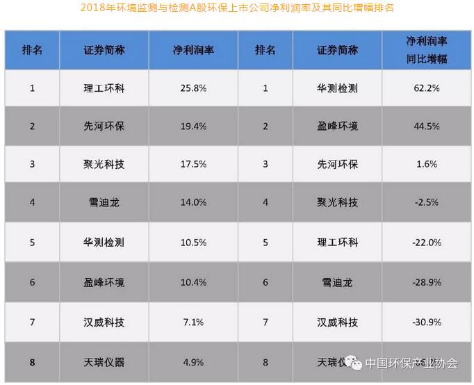 從凈利潤看,環(huán)境監(jiān)測與檢測A股環(huán)保上市公司整體獲利能力優(yōu)于2017年。