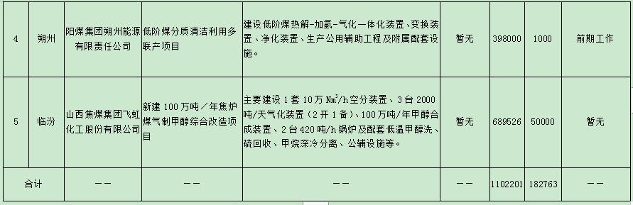以新型煤化工重大項(xiàng)目建設(shè)為抓手,以重點(diǎn)企業(yè)為依托,積極推進(jìn)長(zhǎng)治-晉城、大同-陽(yáng)泉現(xiàn)代煤化工產(chǎn)業(yè)集群發(fā)展。煤制油,重點(diǎn)推進(jìn)潞安煤基清潔能源公司180萬(wàn)噸高硫煤清潔利用油化電熱一體化示范項(xiàng)目擴(kuò)產(chǎn)240萬(wàn)噸/年技改項(xiàng)目,總結(jié)前期產(chǎn)業(yè)化示范經(jīng)驗(yàn),不斷優(yōu)化產(chǎn)品結(jié)構(gòu)。煤制烯烴,跟蹤推進(jìn)同煤集團(tuán)有限責(zé)任公司年產(chǎn)60萬(wàn)噸烯烴項(xiàng)目和焦煤集團(tuán)飛虹化工股份有限公司新建100萬(wàn)噸/年焦?fàn)t煤氣制甲醇綜合改造項(xiàng)目,力爭(zhēng)年內(nèi)實(shí)質(zhì)開(kāi)工。乙二醇,跟蹤推進(jìn)襄礦泓通煤化工有限公司20萬(wàn)噸/年乙二醇項(xiàng)目、陽(yáng)煤集團(tuán)平定化工公司2×20萬(wàn)噸/年煤制乙二醇二期工程、沃能化工科技有限公司年產(chǎn)30萬(wàn)噸乙二醇聯(lián)產(chǎn)LNG項(xiàng)目、金巖精細(xì)化工有限公司焦?fàn)t氣綜合利用一期40萬(wàn)噸/年乙二醇聯(lián)產(chǎn)20萬(wàn)噸/年LNG項(xiàng)目。低階煤綜合利用,跟蹤推進(jìn)陽(yáng)煤集團(tuán)朔州能源有限責(zé)任公司低階煤分質(zhì)清潔利用多聯(lián)產(chǎn)項(xiàng)目、中國(guó)海洋石油集團(tuán)有限公司大同低變質(zhì)煙煤清潔利用示范項(xiàng)目、遠(yuǎn)爾州綠色能源科技有限公司1000萬(wàn)噸/年低階煤分質(zhì)綜合利用項(xiàng)目(一期300萬(wàn)噸/年)。創(chuàng)新示范項(xiàng)目,跟蹤推進(jìn)山西拜奧埃森納新能源有限公司CO2重整利用工業(yè)廢氣生物發(fā)酵法生產(chǎn)20萬(wàn)噸/年燃料乙醇一期2萬(wàn)噸/年示范項(xiàng)目、陽(yáng)煤集團(tuán)800噸/天R-GAS氣化技術(shù)工業(yè)示范裝置項(xiàng)目。