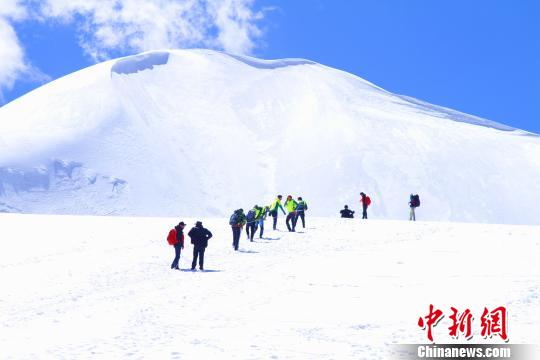 圖為2018年,在保持登山環(huán)保理念的同時(shí),西藏開展洛堆峰民眾性登山活動(dòng)?!≮w朗 攝
