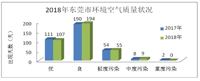公報(bào)顯示,2018年,東莞市環(huán)境空氣質(zhì)量指數(shù)(AQI)范圍在25~190,達(dá)標(biāo)天數(shù)為301天,達(dá)標(biāo)天數(shù)比例為82.5%,同比持平。市生態(tài)環(huán)境局大氣環(huán)境科科長(zhǎng)張永聰表示,目前,東莞市NOx和VOC有關(guān)詳細(xì)整治任務(wù),一是減少火電廠與工業(yè)燃燒源污染排放;二是全面加強(qiáng)機(jī)動(dòng)車(chē)污染治理;三是全面加強(qiáng)揮發(fā)性有機(jī)物污染防治。