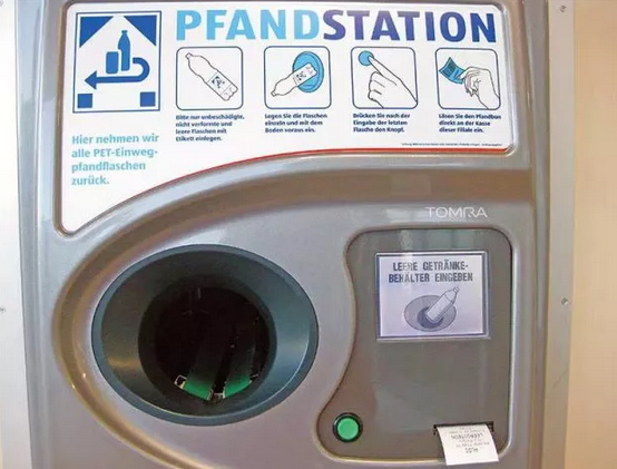 德國隨處可見的飲料瓶罐回收機(jī),右下角正在吐出小票,消費(fèi)者可以用來在柜臺換成現(xiàn)金。