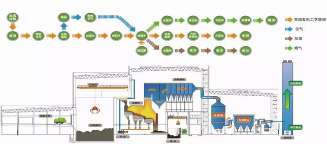 來看一下垃圾焚燒工藝流程圖: