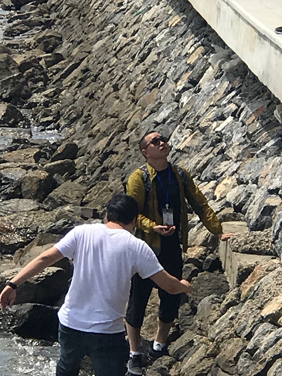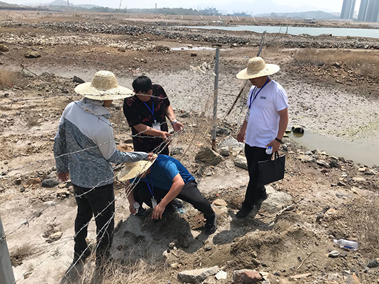 生態(tài)環(huán)境部派出的排查人員在大連市金普新區(qū)進(jìn)行現(xiàn)場排查。郄建榮 攝