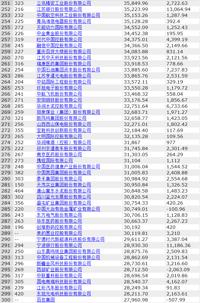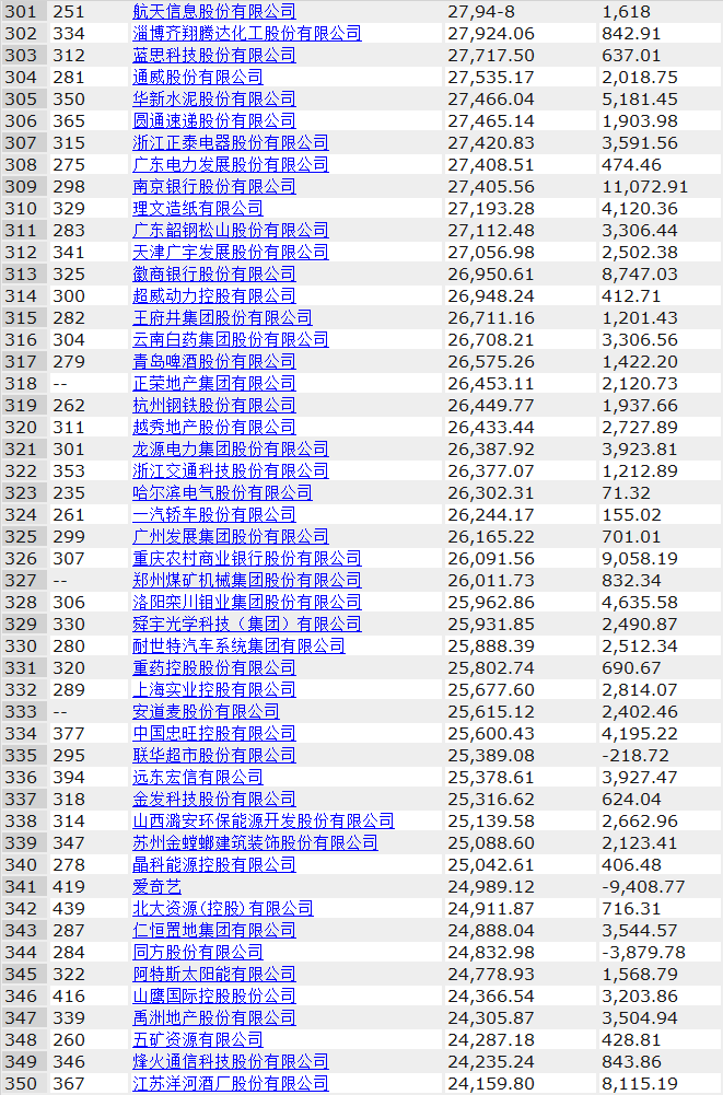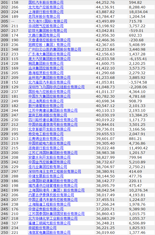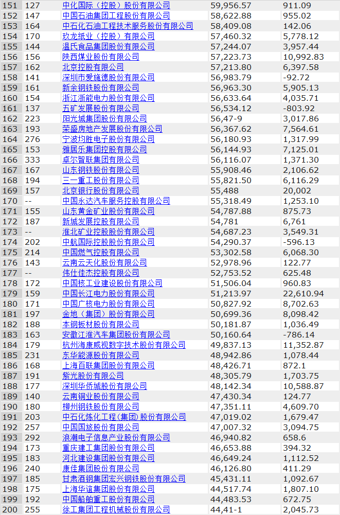 其中中電建、海螺水泥、光大銀行、金隅集團、北京控股、浙能電力、雅居樂、康佳集團、中船重工、徐工集團分別入圍前200強,海螺水泥排名由去年的103位上升至71位,康佳表現(xiàn)也不俗,由上年的240名上升至196,足足前進了44名。