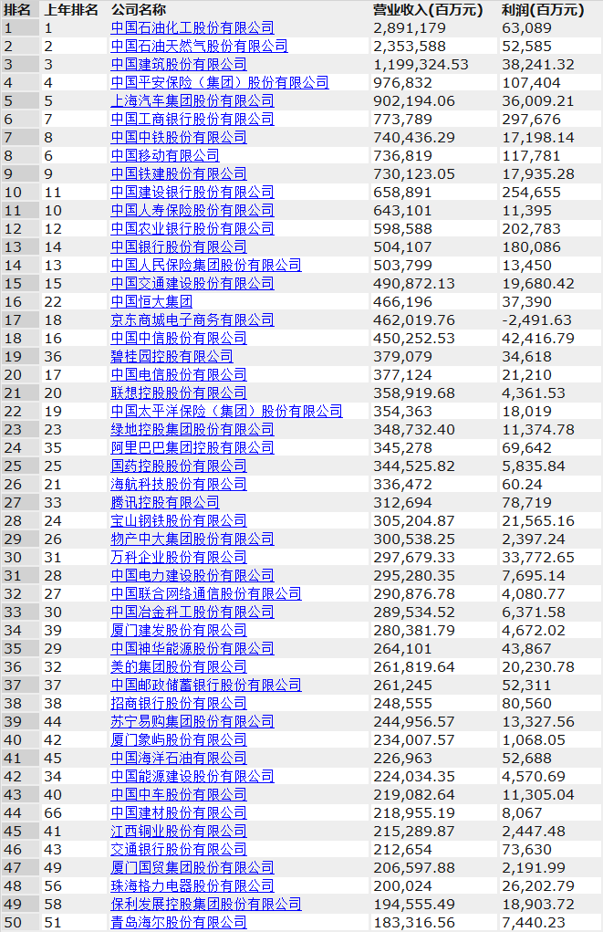 附2019《財富》中國500強全名單: