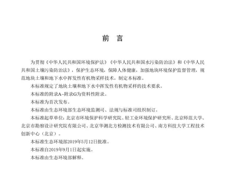 為貫徹《中華人民共和國環(huán)境保護法》《中華人民共和國水污染防治法》和《中華人民共和國土壤污染防治法》,保護生態(tài)環(huán)境,保障人體健康,加強地塊環(huán)境保護監(jiān)督管理,規(guī)范地塊土壤和地下水中揮發(fā)性有機物采樣技術(shù),制定本標準。