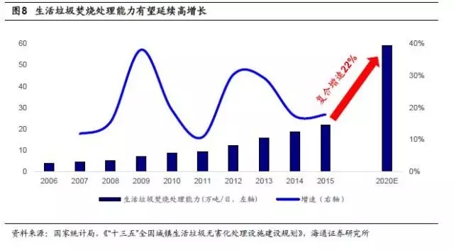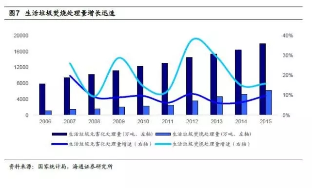 隨著中國城市化進程的加快以及人民生活水平的提高,城鎮(zhèn)生活垃圾迅速增加,垃圾處理缺口巨大,垃圾焚燒將成為主要的生活垃圾處理方式。海通證券研究所預(yù)測,“十三五”期間“工程+運營”市場接近3000億。另一方面,危廢處理能力的不足,使危廢行業(yè)擁有廣闊的市場空間。