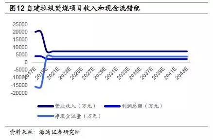 對于自建的垃圾焚燒BOT項目,其收入和現(xiàn)金流錯配,項目建設(shè)階段確認的工程收入較多,確認的利潤也通常較高,但沒有實際的現(xiàn)金流入,運營階段項目的收入降低,但是有穩(wěn)定的經(jīng)營性現(xiàn)金流入。項目回收期較長,考驗公司資金實力和融資能力。