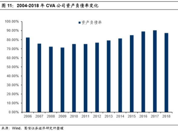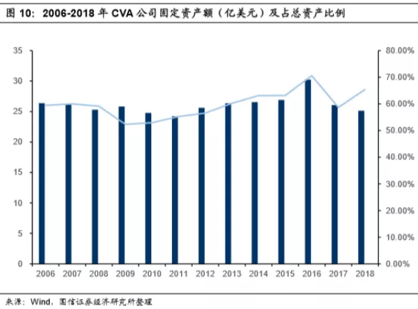 固定資產(chǎn)金額大,資產(chǎn)負債率較高。垃圾焚燒行業(yè)總資產(chǎn)屬性決定了公司固定 資產(chǎn)在總資產(chǎn)的占比以及資產(chǎn)負債率一直處于較高水平。CVA 歷年的固定資產(chǎn) 金額均超過 24 億美元,占總資產(chǎn)的比重也超過了 50%。其資產(chǎn)負債率也一直 維持在 70%左右。