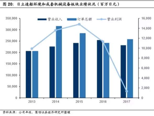 日立造船以環(huán)境和設備業(yè)務為主,公司堅持以制造為基礎,向多個領域延伸發(fā) 展,提供設施設備制造服務。公司業(yè)務由四部分組成:環(huán)境和成套機械設備、 機械、基礎設施和其他,業(yè)務范圍廣。其中,環(huán)境和成套機械設備板塊占比基 本維持在 60%的水平,其次是機械板塊,占比在 25%-30%之間。垃圾焚燒發(fā) 電設施是環(huán)境和設備板塊的重要組成部分。近五年,環(huán)境和設備板塊的營業(yè)收 入整體變動不大,增減幅在 10%以內,但營業(yè)利潤波動較大,2015 年達到峰 值,營業(yè)利潤為 148.19 億日元,2016-2017 年連續(xù)下降至 13.16 億日元,主要 受公司訂單量減少影響。