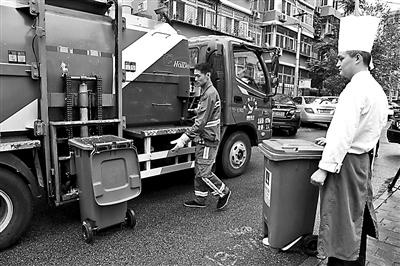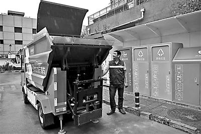 朝陽區(qū)白領(lǐng)家園小區(qū)的垃圾由不同的垃圾運(yùn)輸車分類運(yùn)輸攝影/本報(bào)記者 黑建軍