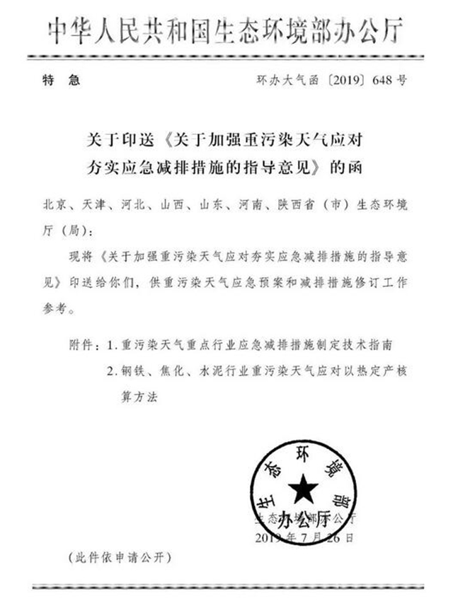 原標(biāo)題:關(guān)于印送《關(guān)于加強(qiáng)重污染天氣應(yīng)對夯實應(yīng)急減排措施的指導(dǎo)意見》的函