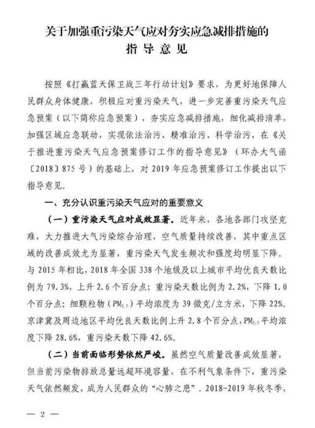 環(huán)境部:關(guān)于加強(qiáng)重污染天氣應(yīng)對夯實應(yīng)急減排措施的指導(dǎo)意見