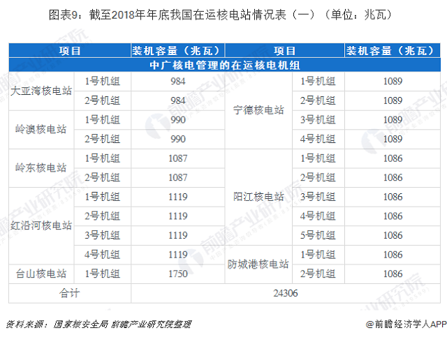 截至2018年12月31日,中廣核電力管理的在運(yùn)核電機(jī)組達(dá)22臺(tái),在運(yùn)裝機(jī)容量達(dá)24306兆瓦,占我國大陸在運(yùn)核電總裝機(jī)容量的54.44%,是我國在運(yùn)裝機(jī)規(guī)模最大的核電開發(fā)商與運(yùn)營商。與此同時(shí),中廣核電力在建核電機(jī)組達(dá)6臺(tái),在建總裝機(jī)容量達(dá)7434兆瓦,占全國在建核電裝機(jī)容量55.30%,市場份額第一。