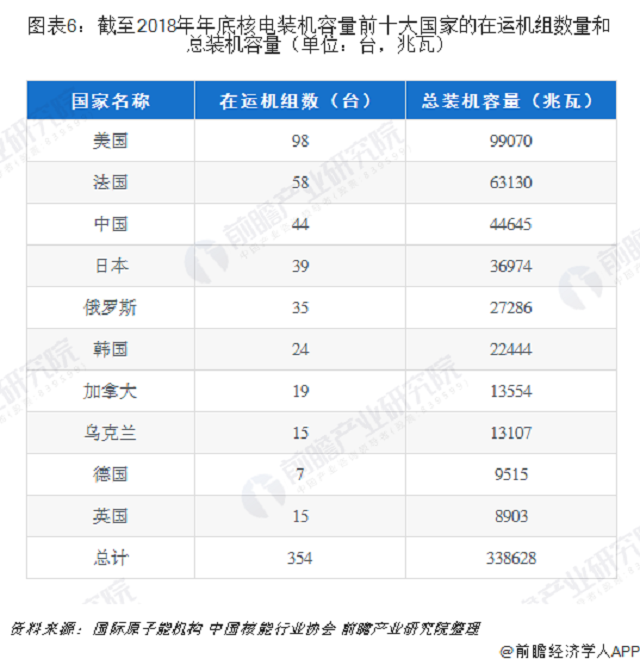 根據(jù)國際原子能機(jī)構(gòu)及中國核能行業(yè)協(xié)會(huì)的統(tǒng)計(jì),截至2018年12月31日,中國核能裝機(jī)容量位列全球第3位,超越日本,總裝機(jī)容量達(dá)到44645兆瓦。