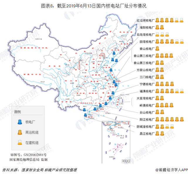 截至2018年12月31日,我國共有在運(yùn)核電機(jī)組44臺(tái),大部分分布在廣東、福建、浙江、廣西等沿海地區(qū)。此外,我國共有在建核電機(jī)組12臺(tái),大部分分布在廣東、廣西等東南沿海地區(qū)。