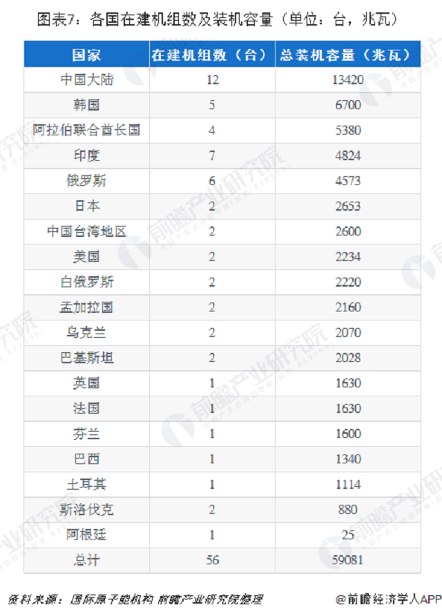 十張圖帶你了解全球核電行業(yè)發(fā)展情況 裝機(jī)容量世界第三,在建容量世界第一