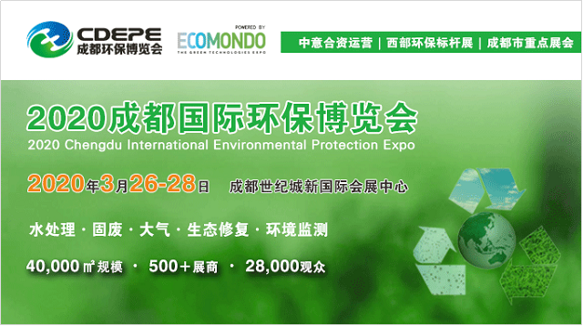 CDEPE2020成都國際環(huán)保博覽會將于2020年3月26-28日在成都世紀(jì)城新國際會展中心舉辦。本屆展會預(yù)計展出面積達(dá)40,000平方米,參展商超過500家,預(yù)計將吸引28,000名專業(yè)觀眾共襄盛舉。