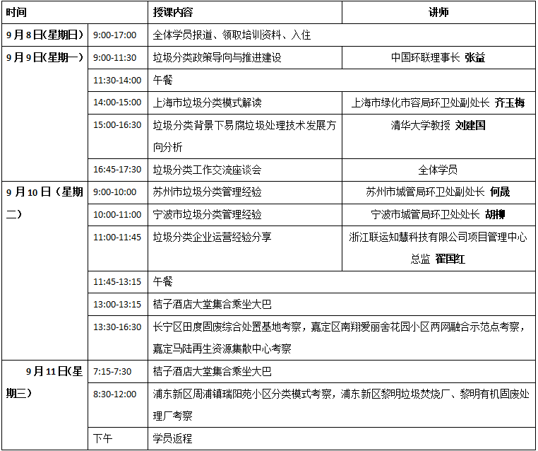 在此背景下,中國環(huán)聯(lián)擬于2019年9月8日至11日在上海市舉辦第一期垃圾分類培訓(xùn),培訓(xùn)內(nèi)容包括垃圾分類政策導(dǎo)向與推進(jìn)建設(shè)、垃圾分類實(shí)施方案與實(shí)務(wù)操作、上海等相關(guān)城市垃圾分類模式分析與經(jīng)驗(yàn)分享等,并組織實(shí)地參觀考察。