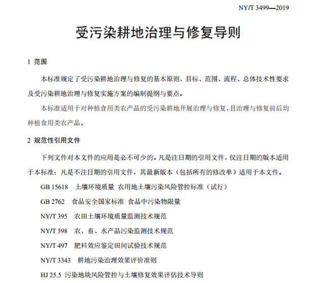 《受污染耕地治理與修復(fù)導(dǎo)則(NY/T 3499-2019)》將于2019年11月1日正式實(shí)施。