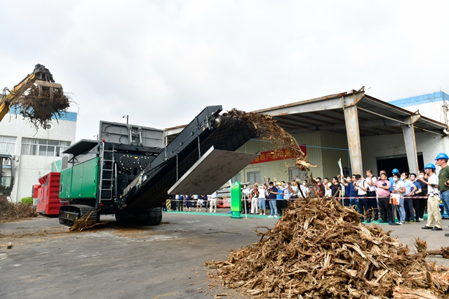 其中,令人矚目的是從奧地利原裝進口的奧地利Komptech移動式破碎機和斯瑞德自主研發(fā)的移動式破碎機,只見機器輕松吞下一人懷抱的大樹,出來的200mm~300mm的木塊。