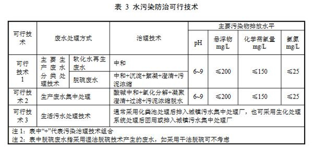 水污染防治可行技術參見表3。
