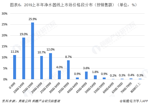 原標題:2019年上半年凈水器行業(yè)市場現(xiàn)狀與競爭格局分析 線上價格段以低端為主,線下價格向3500元段靠攏