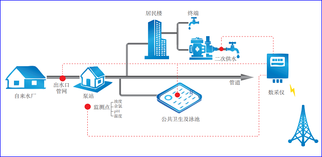 據(jù)介紹,天健創(chuàng)新供水管網(wǎng)水質(zhì)在線監(jiān)測系統(tǒng)由現(xiàn)場監(jiān)測單元(分析儀表、信號采集及無線傳輸)、遠(yuǎn)程數(shù)據(jù)中心站組成,可實現(xiàn)自動測量、連續(xù)采集、自動傳輸、直觀顯示數(shù)據(jù)以及自動報警等功能。