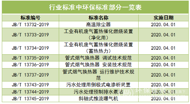 今年,工信部發(fā)布的行業(yè)標(biāo)準(zhǔn)繼續(xù)。9月份,再發(fā)布436項(xiàng)行業(yè)標(biāo)準(zhǔn),其中涉及高溫除塵器、煙氣換熱器、蓄熱式催化燃燒裝置等環(huán)保標(biāo)準(zhǔn),這些標(biāo)準(zhǔn)的實(shí)施日期均在2020年。具體如下: