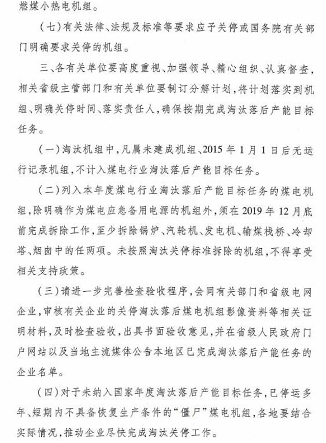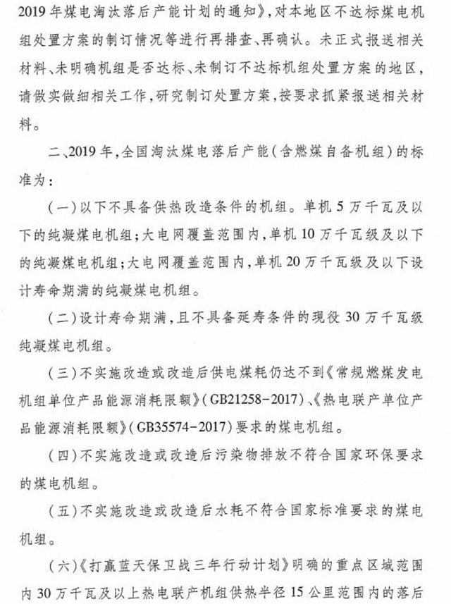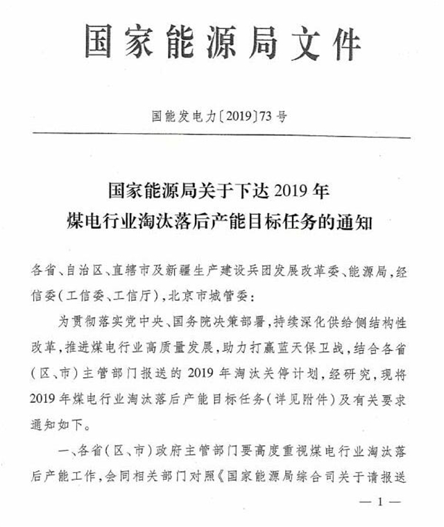國家能源局關(guān)于下達(dá)2019年煤電行業(yè)淘汰落后產(chǎn)能目標(biāo)任務(wù)的通知