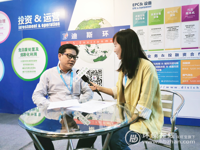 迪斯環(huán)保副總裁朱劍輝(左一)接受本網(wǎng)專訪