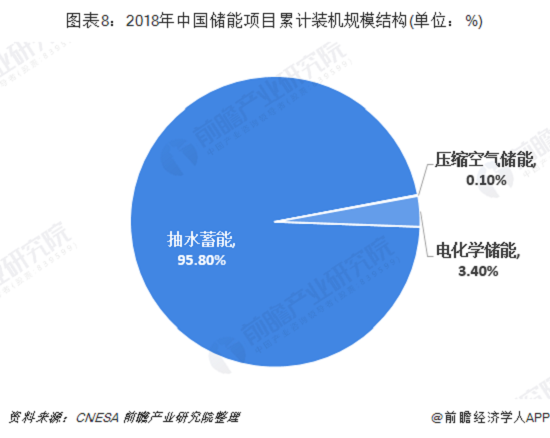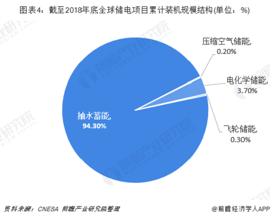 根據(jù)CNESA全球儲能項目庫的不完全統(tǒng)計,截至2018年底,抽水蓄能的累計裝機(jī)規(guī)模占儲電項目累計裝機(jī)容量的95.74%。