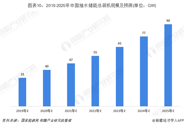 截至2018年底,中國已投運(yùn)的抽水蓄能的裝機(jī)規(guī)模為29.99GW,在建規(guī)模44.00GW,根據(jù)國家能源局發(fā)布的《水電發(fā)展“十三五”規(guī)劃》,到2020年底,我國抽水蓄能的累計裝機(jī)規(guī)模達(dá)到40GW,2025年將達(dá)到90GW。