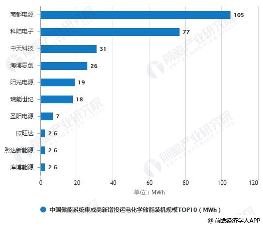 2018年,中國(guó)新增投運(yùn)的電化學(xué)儲(chǔ)能項(xiàng)目中,功率規(guī)模排名前十位的儲(chǔ)能系統(tǒng)集成商,依次為:南都電源、科陸電子、中天科技、海博思創(chuàng)、陽光電源、瑞能世紀(jì)、圣陽電源、欣旺達(dá)、煦達(dá)新能源和庫博能源。