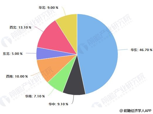 2017年中國(guó)危險(xiǎn)廢物產(chǎn)生量區(qū)域分布占比統(tǒng)計(jì)情況
